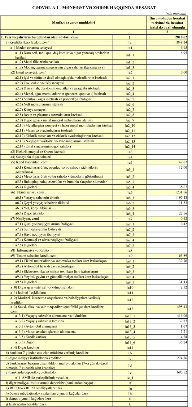 Müştərilər verilən kreditlər isə 146 milyon 110 min manatdan 146 milyon 670 min manata yüksəlib.
