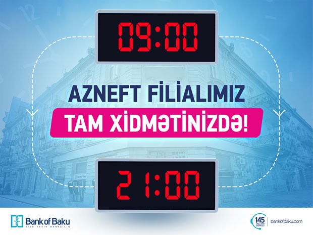 "Bank of Baku"nun “Azneft” filialı artıq həftənin 7 günü tam xidmət göstərəcək