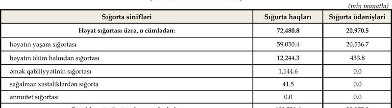 Müqayisə olunan dövrdə həyatın ölüm halından sığortası üzrə toplanan sığorta haqları 17 milyon 983 min manatdan 12 milyon 244 min manata düşüb.