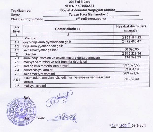Dövlət Avtomobil Nəqliyyatı Xidmətini 2018-ci ili 14 min manat xalis mənfəət ilə başa vurub.