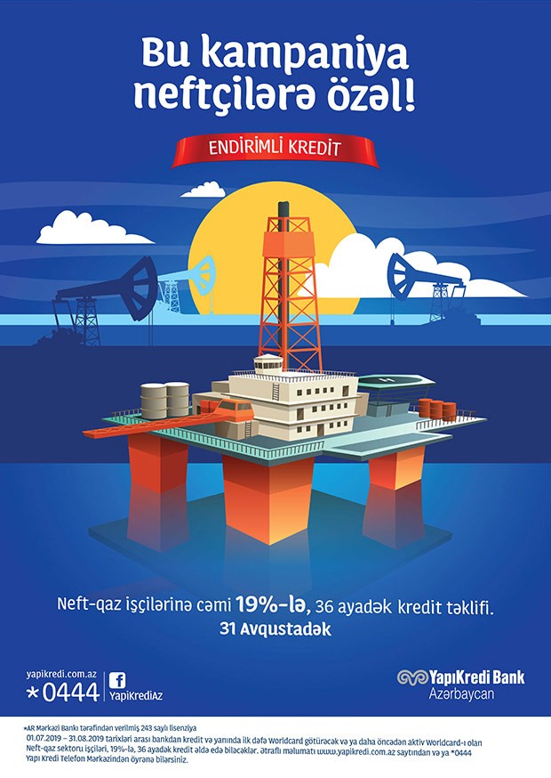 01.07.2019 – 31.08.2019-tarixləri arası Bankda kredit və yanında Worldcard götürəcək Neft-Qaz sektoru işçilərinə 19%- lə kredit təklifi.