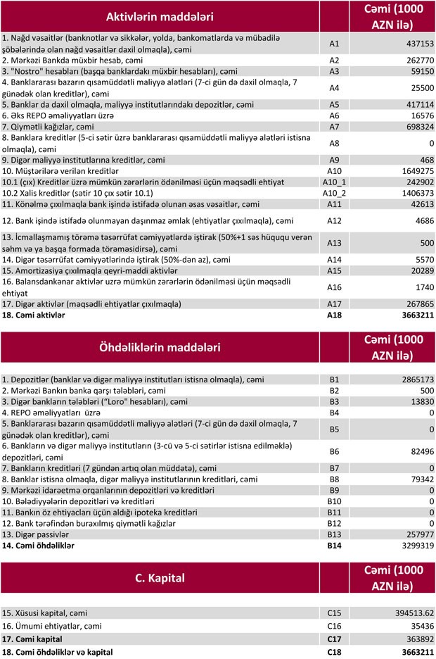 30 İyun 2019-cu il tarixində “Kapital Bank” 3 milyard 663 milyon 211 min manat cəmi aktivlərə malik olub. Aktivlərin 1 milyard 649 milyon 275 min manatını müştərilərə verilən kreditlər təşkil edib. 2018-ci ilin sonunda “Kapital Bank”ın cəmi aktivləri 3 milyard 716 milyon 480 min manat, müştərilərə verilən kreditlər 1 milyard 500 milyon 888 min manat təşkil etmişdi. İlin əvvəlindən müştərilərə verilən kreditlər 148 milyon 387 min manat artıb. Aktivlərin azalmasının səbəbi Mərkəzi Bankda müxbir hesabın azalması ilə bağlıdır.