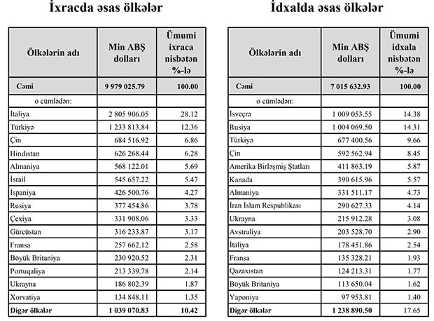 Beləliklə, bu dövrdə Rusiya ilə idxal-ixrac münasibətlərində Azərbaycanın mənfi saldosu 626 mln. 614,64 min dollar təşkil edib.