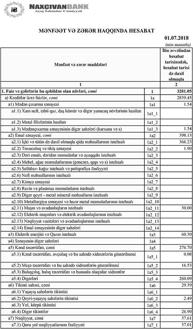 Qeyd edək ki, “Naxçıvanbank” ASC 2018-ci ilin birinci yarısını 2 milyon 326 min manat xalis mənfəətlə başa vurmuşdu. Ötən ilin yanvar-iyun dövründə “Naxçıvanbank”ın cəmi gəlirləri 4 milyon 806 min manat, cəmi xərcləri 1 milyon 828 min manat, əməliyyat mənfəəti 2 milyon 977 min manat təşkil etmişdi. Bank əməliyyat mənfəətinin 651 min manatını ehtiyata ayırmışdı.