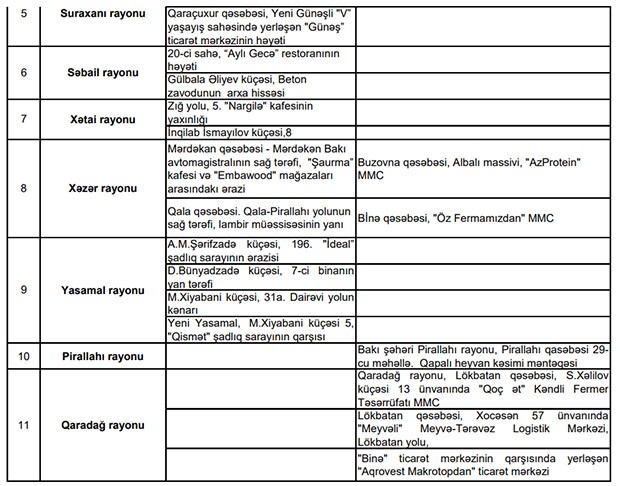 Qurban bayramı dövründə Bakı şəhərinin rayonları və regionlar üzrə heyvan kəsimi məntəqələrinin dislokasiya yerləri haqqında