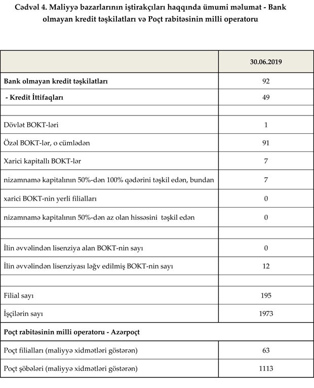 30 iyun 2019-cu il tarixinə Azərbaycanda fəaliyyət göstərən bankların cəmi aktivləri 29 milyard 980.1 milyon manat, cəmi öhdəlikləri isə 25 milyard 380.5 milyon manat təşkil edib. Sektorun balans kapitalı 4 milyard 599.6 milyon manat olub.