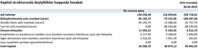 Hazırda bankın məcmu kapitalı 76 milyon 685 min manat təşkil edir ki, bu da requlyativ normadan (50 milyon manat) 53.4% çoxdur.