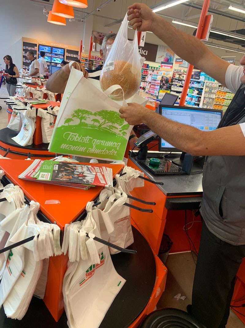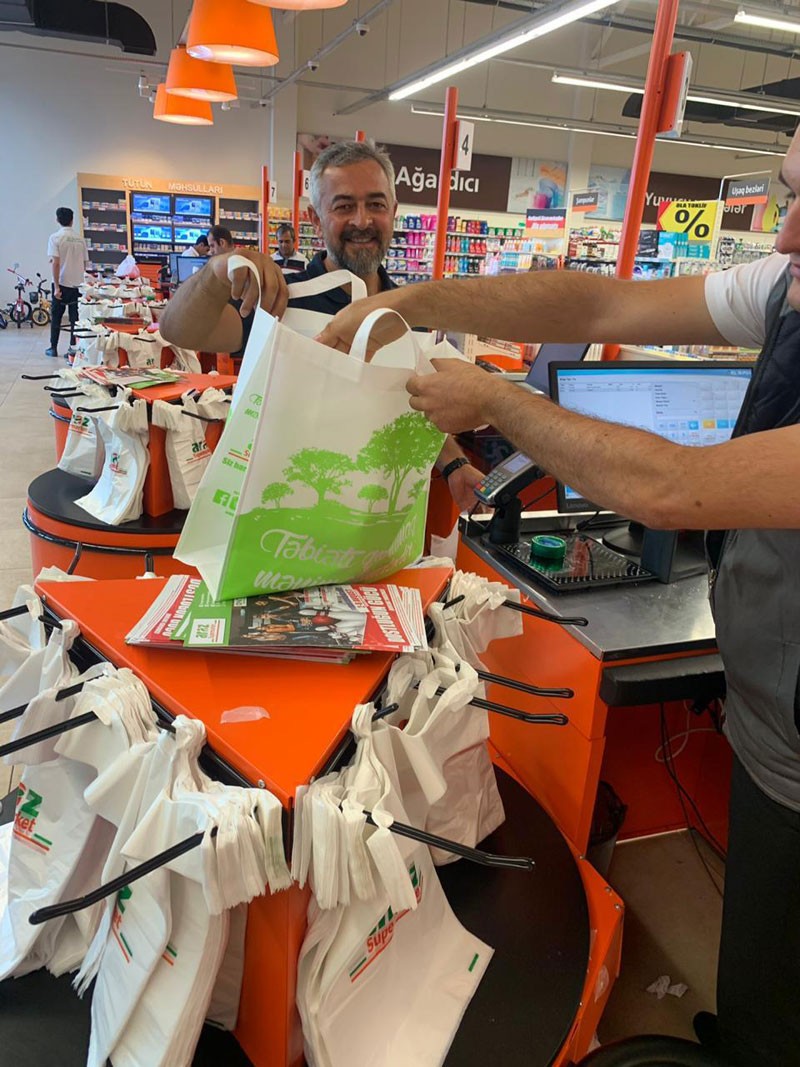 Biz də yerli şəbəkə olaraq bu istiqamətdə ilk addımı atdıq. “Təbiəti qorumaq mənim əlimdədir” devizi ilə müştərilərimizi polietilen paketlərdən istifadəni azaltmaqla təbiətə töhvə verməyə səsləyirik.