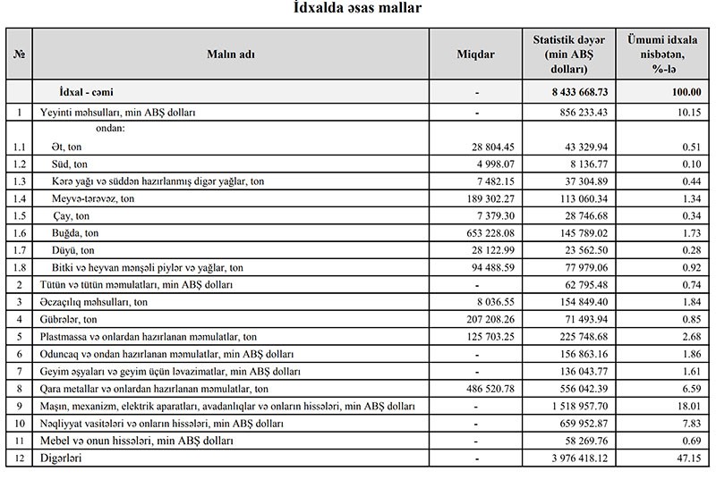 Azərbaycanın ən çox ixrac və idxal etdiyi mallar
