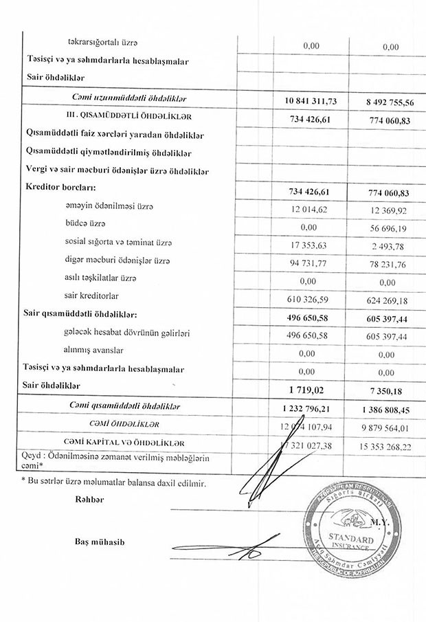 Müqayisə üçün qeyd edək ki, 2018-ci ilin 1-ci yarısında “Standard İnsurance”ın cəmi gəlirləri 4 milyon 892 min manat, cəmi xərcləri isə 5 milyon 266 min manat təşkil etmiş və xərclər gəlirləri üstələdiyindən 375 min manat zərər yaranmışdı.