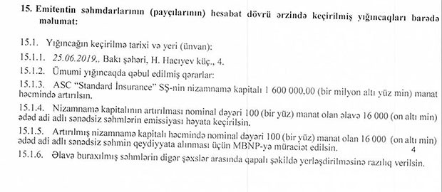 İyunun 25-də “AB Standard” Standard İnsurance”ın nizamanmə kapitalının 1,6 milyon manat artırılmasına qərar verirb. Proses başa çatdıqdan sonra sığorta şirkətinin nizamnamə kapitalı 12,6 milyon manata yüksələcəkdir. Yeni səhmlər qapalı şəkildə yerləşdiriləcəkdir.