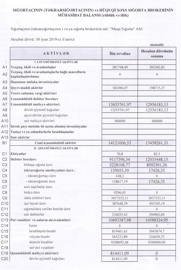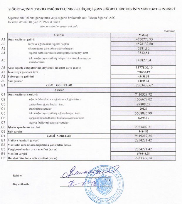 “Meqa Sığorta” ASC 2019-cu ilin 1-ci yarısını 2 milyon 283 min manat xalis mənfəət ilə başa vurub. Müqayisə üçün qeyd edək ki, şirkət ötən ili eyni dövrünü 2 milyon 530 min manat xalis mənfəətlə bağlamışdı. Beləliklə, “Meqa Sığorta”nın xalis mənfəəti 9,8% azalıb. Xalis mənfəətin azalmasının əsas səbəbləri - toplanmış sığorta haqlarının azalması, eyni zamanda sığorta ödənişlərinin və işlərin aparılması xərclərinin artmasıdır. Həmçinin, şirkətin sığorta ehtiyatlarına ayırdığı vəsait 2,4 dəfə artıb.