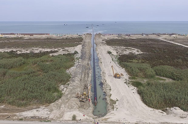 Xəttin korroziyaya qarşı davamlılığını təmin etmək üçün borular daxildən və xaricdən xüsusi materialllarla izolyasiya olunub. Bu yaxınlarda boruların quraşdırılması işləri yekunlaşıb və xəttin dəniz vasitəsilə Pirşağı qəsəbəsində inşası davam edən təmizləyici qurğunun yerləşdiyi əraziyə daşınması həyata keçirilb.