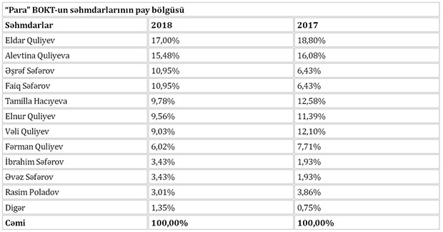 “Para” BOKT-un səhmdarlarının pay bölgüsü dəyişib