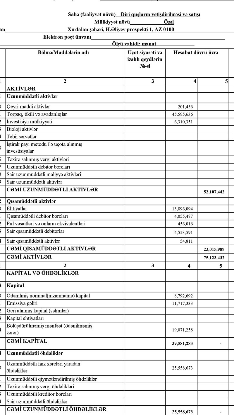 Broyler cücələrinin sənaye üsulu ilə yetişdirilməsi, kəsimi və broyler ətinin satışı, yem bitkilərinin və onun toxumlarının becərilməsi və satışı, süd məhsullarının istehsalı və satışı ilə məşğul olan “SƏBA” ASC 2019-cu il üzrə yarımillik maliyyə göstəricilərini açıqlayıb.