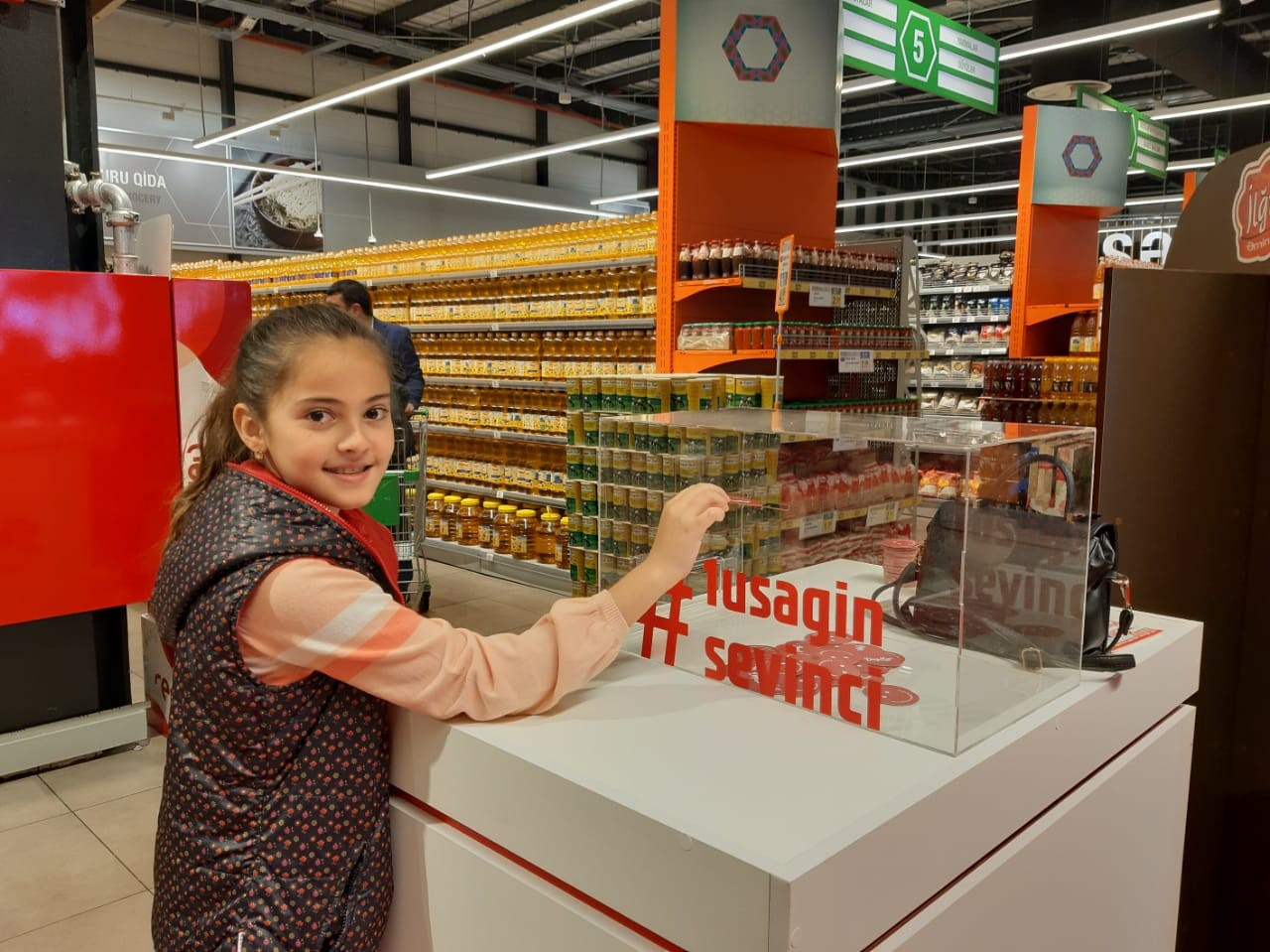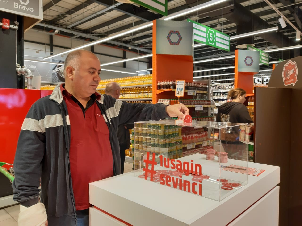 Hər alışdan 0,10 AZN xeyriyyə üçün köçürüləcək. Sosial dəstəyə ehtitacı olan uşaqlara alıcıların yardım simvolu olan “Doymak” jeton-qəpikləri şəxsən özləri tərəfindən atmaq üçün stendlərin üstündə xüsusi şəffaf qutular quraşdırılıb.