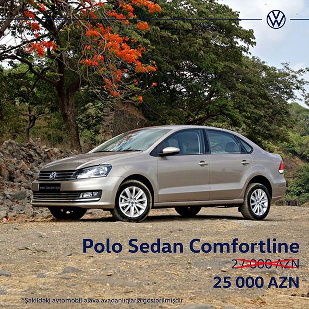 (®) Məhdud sayda Volkswagen Polo Sedan Comfortline avtomobilinə 27000 manata deyil, cəmi 25000 manata sahib ola bilərsiniz.