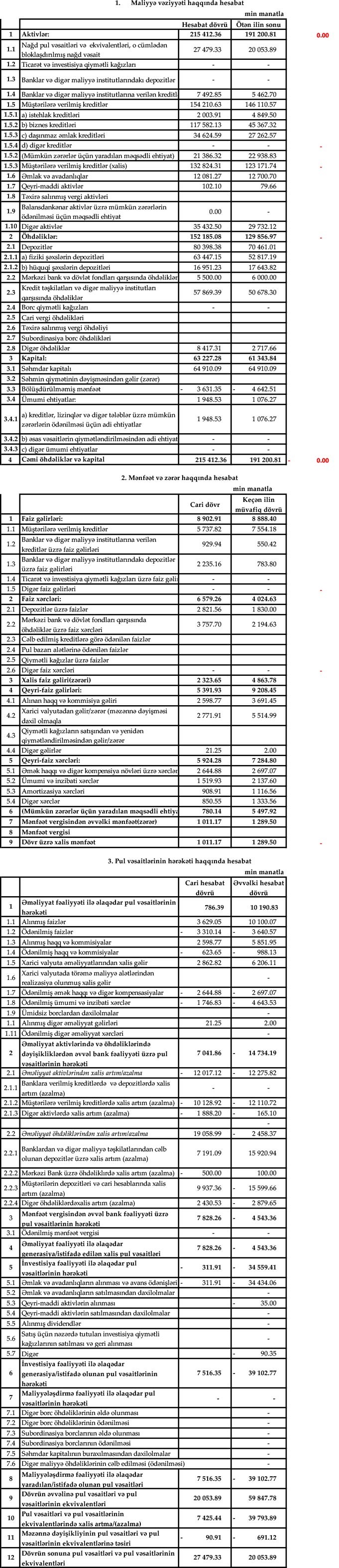 30.09.2019-cu il tarixinə "GünayBank"ın maliyyə göstəriciləri