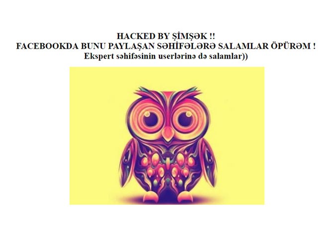 Hakerlər saytda bu mətni yerləşdirib: "HAKCED BY ŞİMŞƏK ! MUĞANBANKI VURMAYAN BİR ŞİMŞƏK QALMIŞDI ODA VURDU! BOoOoOm!"