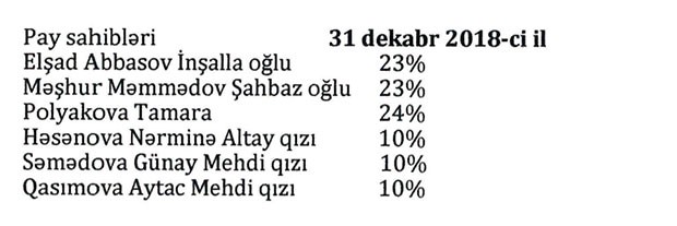 “Marja” şirkətin illik hesabatına istinadən xəbər verir ki, pay sahiblərinin sayı 3-dən 6-ya yüksəlib.
