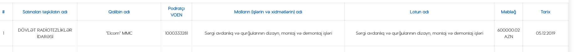 Bu il Dövlət Radiotezliklər İdarəsi "Elcom" MMC ilə ümumi məbləği 829 min manat olan 6 müqavilə bağlayıb. Ən böyükməbləğli müqavilə "Sərgi avdanlıq və qurğularının dizayn, montaj və demontaj işləri"ni nəzərdə tutur.