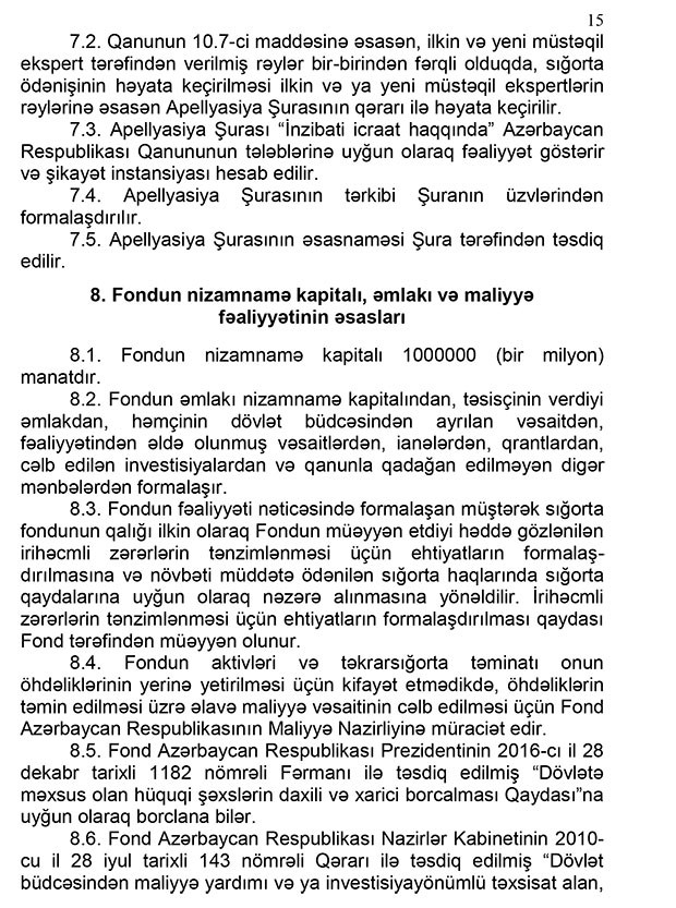 “Marja” xəbər verir ki, Qərar ilə “Aqrar Sığorta Fondunun Nizamnaməsi” təsdiq edilib.
