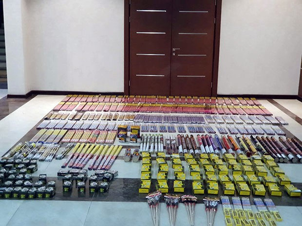 Baxış zamanı avtomobilin yük yerində və salonunda karton qutuların içərisində 6260 ədəd fişəng və pirotexniki vasitələr aşkarlanıb.