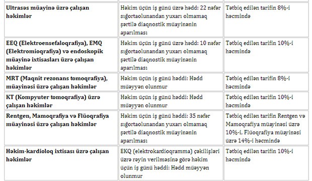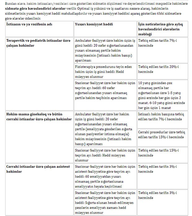 Vəzifə öhdəliklərinin xarakterindən və müvafiq həkim ixtisası (vəzifəsi) üzrə pasiyent müraciətinin qeydiyyatı xüsusiyyətləri nəzərə alınaraq, bəzi həkimlərin (ixtisaslar/vəzifələr üzrə) aylıq vəzifə (tarif) maaşına sabit həvəsləndirici əlavələr tətbiq edilir: