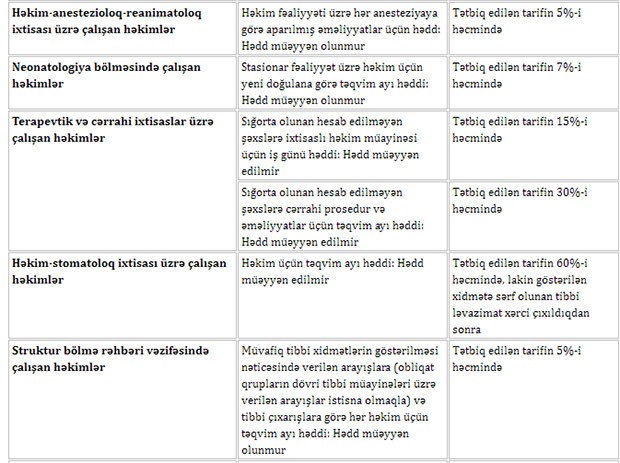 Reanimasiya şöbəsində çalışan həkimlər üçün hər gecə növbəsi üçün 30 manat, gecə növbəsi zamanı tibbi xidmət göstərilən hər pasiyent üçün 5 manat məbləğində normativlərlə bağlı əlavələr verilir.