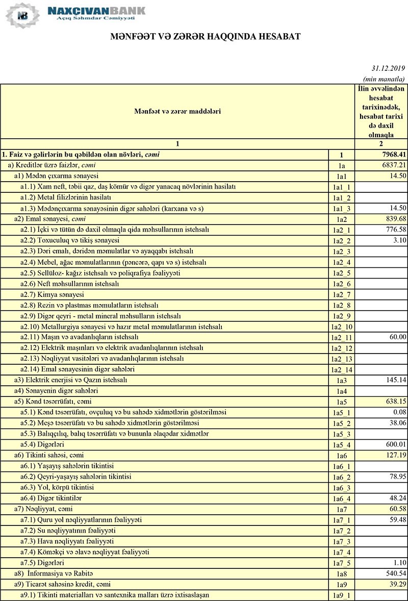 Vaxtı keçmiş kreditlər “Naxçıvanbank”ın xalis mənfəətini azaldıb