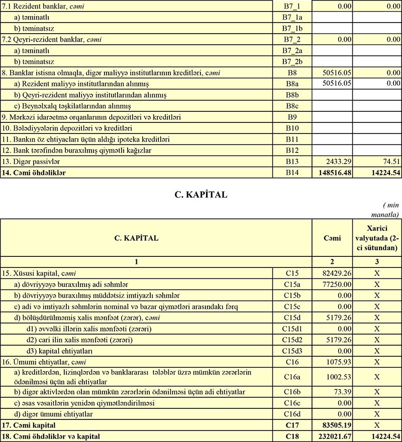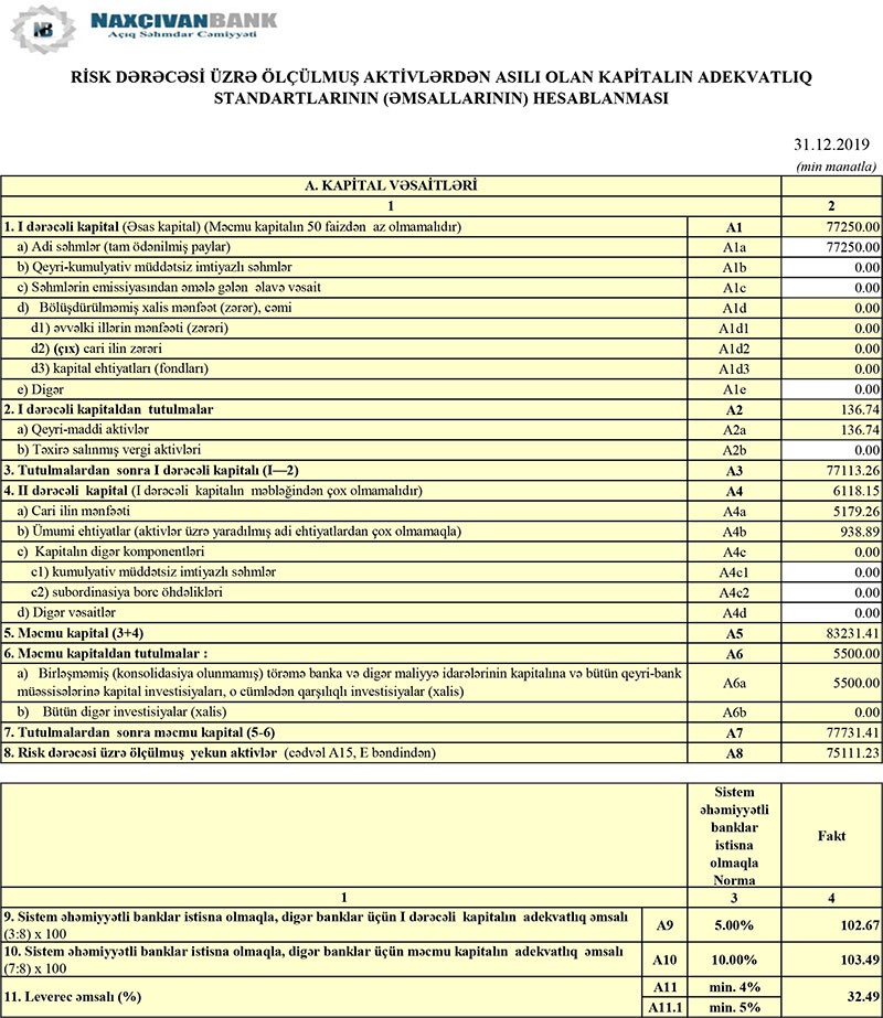 2018-ci illə müqayisədə 2019-cu ildə əməliyyat mənfəətinin artmasına baxmayaraq xalis mənfəətinin azalması Bankın aktivlər üzrə mümkün zərərlərin ödənilməsi üçün xüsusi ehtiyatın yaradılmasına ayırmalarının 10 dəfəyə yaxın artması ilə əlaqədardır. 2018-ci ildə cəmi 110 min manat olmuş ayırma 2019-cu ildə 1 milyon 59 min manat təşkil edib. Daha çox ayırma ödəmə vaxtı keçmiş kreditlərin artdığına işarədir.