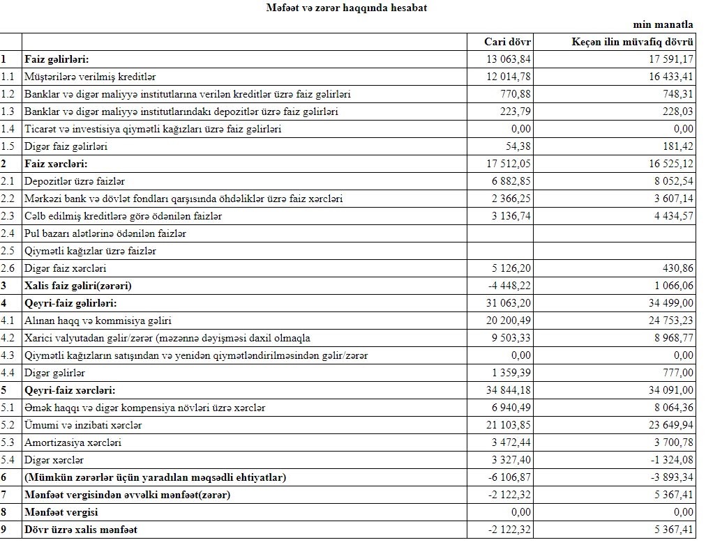 “Marja” Banka istinadən xəbər verir ki, ötən il “AGBank”ın cəmi faiz və qeyri-faiz gəlirləri 44 milyon 126 min manat, faiz və qeyri-faiz xərcləri isə 52 milyon 356 min manat təşkil edib. Xərclər gəlirləri 8 milyon 230 min manat üstələsə də, mümkün zərərlər üçün yaradılan məqsədli ehtiyatlardan 6 milyon 106 min manatın azad olması əməliyyat zərərini 2 milyon 122 min manatadək azaldıb.