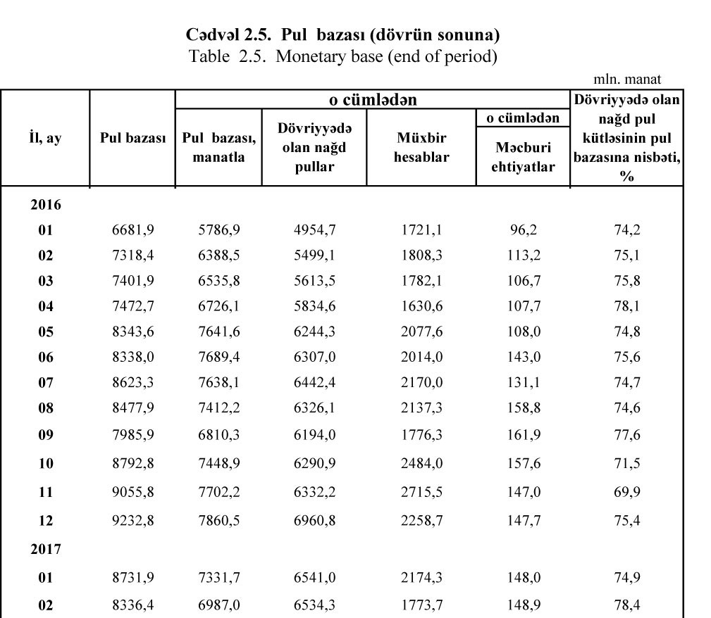 Mart ayının 1-nə dövriyyədə 6 milyard 534,3 milyon manat nağd pullar olub. Bu məbləğ Fevral ayının əvvəli ilə müqayisədə cüzi azdır. Fevral ayının əvəlində dövriyyədə 6 milyard 541 milyon manat nağd pullar olmuşdu.