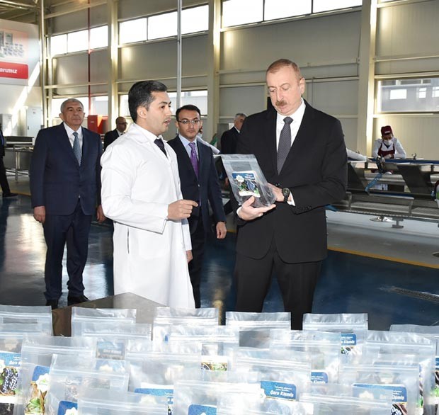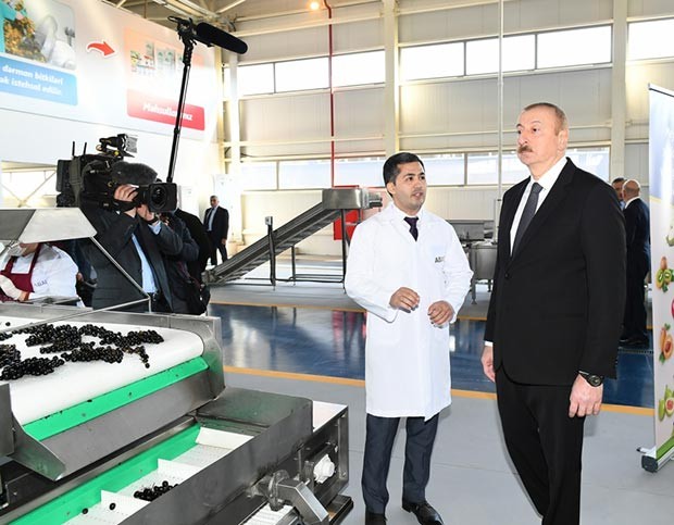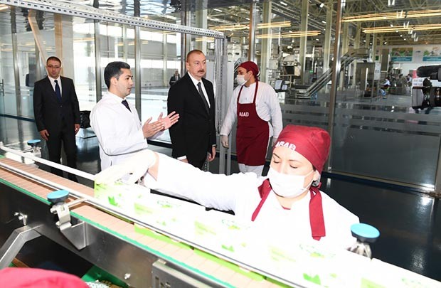 Azərbaycan Prezidenti İlham Əliyev fabriki işə salıb.