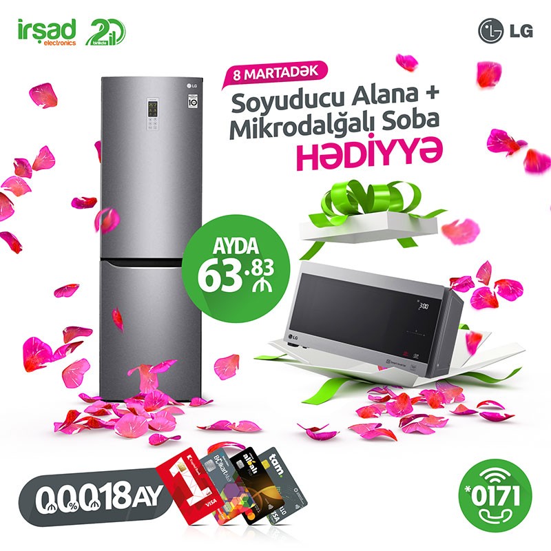 Ya da ona televizor alın, sizin futbol matçlarınızda pult üstündə xətrinə dəyməyəsiniz! BirKart-la İrşad Elektronics-dən bir LG televizoru alsanız, ikincisi sizə hədiyyə veriləcək. İlkin ödənişsiz, faizsiz, 24 ay ərzində ayda 91 manat 63 qəpik ödəməklə siz ona sevdiyi serialı rahat izləmək imkanı hədiyyə edə bilərsiniz.