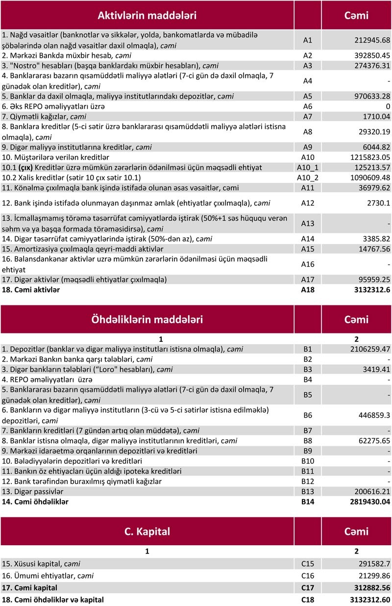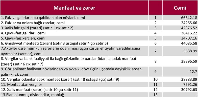 “Marja” Bankın maliyyə göstəricilərinə istinadən xəbər verir ki, yanvar-mart aylarında Bankın cəmi gəlirləri təxminən 103 milyon manat olub. Xərclər çıxıldıqdan sonra 44 milyon 85 min manat əməliyyat mənfəəti qalıb. Əməliyyat mənfəətinin 5 milyon 689 min manatı aktivlər üzrə mümkün zərərlərin ödənilməsi üçün xüsusi ehtiyatın yaradılmasına ayırılıb. Bundan başqa, Bank 7 milyon 591 min manat mənfəət vergisi ödəyib. Nəticədə birinci rüb 30 milyon 792.63 min manat xalis mənfəət ilə bağlanıb.