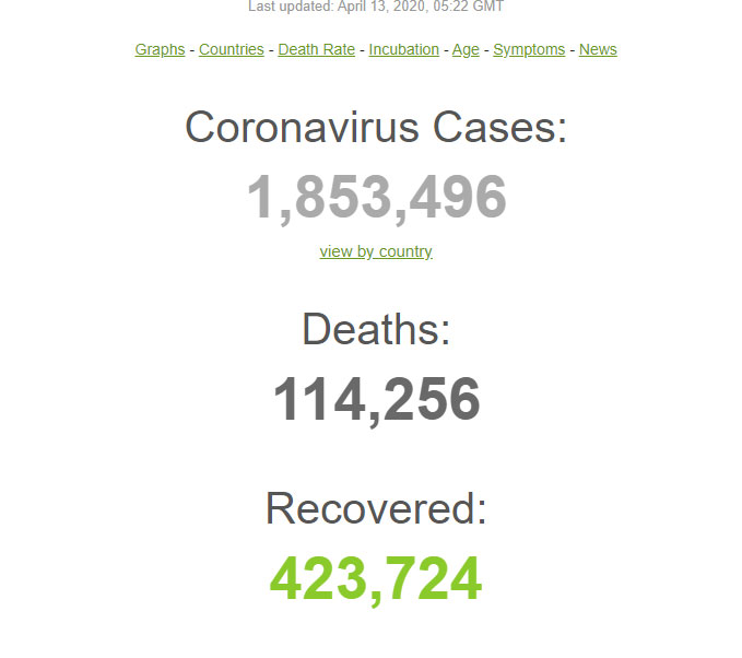 Marja məlumatların dərc edildiyi Worldometers saytına istinadən xəbər verir ki, koronovurusa yoluxduğu aşkarlananların sayı isə 1,8 milyon nəfəri keçərək 1 milyon 853 min 496 nəfərə çatıb.