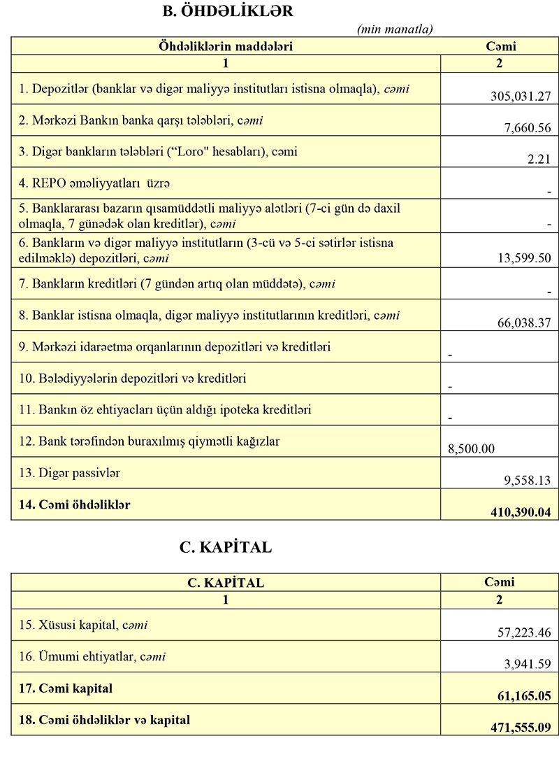 İlk 3 ayda “YeloBank”da depozitlər 9 milyon 214 min manat və ya 3% azalaraq 305 milyon 31 min manata geriləyib.