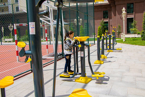Dörd binanın həyəti kənardan girişlərə qapadılaraq yalnız sakinlərin istirahəti üçün aktiv zona kimi nəzərdə tutulub. Burada yaşıllıq, ağaclar, xüsusi qaçış və velosiped zolaqları, voleybol və basketbol meydançası, tennis kortu, uşaqlar üçün oyun meydançaları, velo parkinq əhalinin ixtiyarındadır.