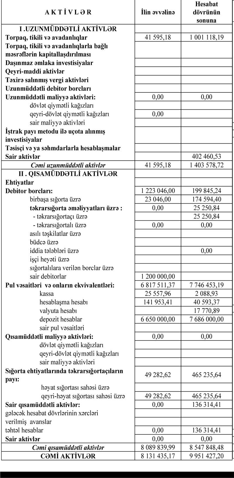 "Günay Sığorta" ASC-nn 31 Dekabr 2016-cı il tarixinə balans hesabatı