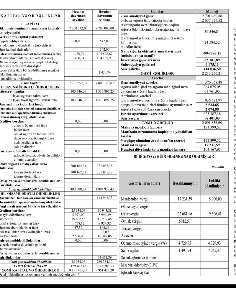 “Günay Sığorta” ASC 2016-cı ili 104 min 167 manat xalis mənfəət ilə başa vurub.