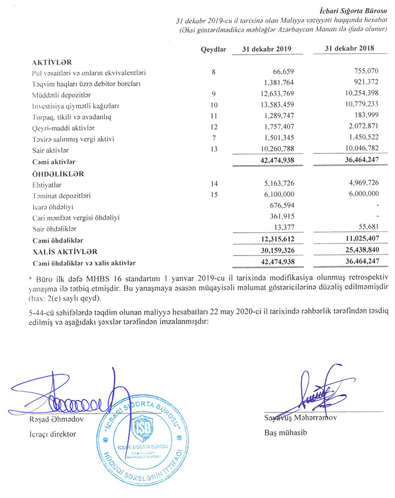 2018-ci illə müqayisədə 2019-cu ildə İSB-nin cəmi aktivləri 16,5% artaraq 42 milyon 475 min manat təşkil edib. Büronun müddətli depozitləri 10 milyon 254 min manatdan 12 milyon 634 min manata, qiymətli kağılara investisiyaları isə 10 milyon 779 min manatdan 13 milyon 583 min manata yüksəlib.