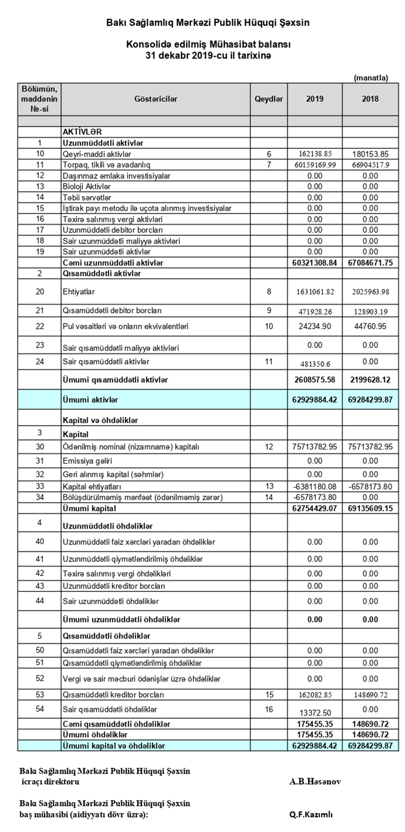 3 ildə cəmi zərər 17 milyon 793 min manat təşkil edirBakı Sağlamlıq Mərkəzi Publik Hüquqi Şəxsi 2019-cu ili 6 milyon 381 min manat xalis zərər ilə başa vurub. Mərkəz 2018-ci ili 6 milyon 578 min manat zərər ilə bağlamışdı. Beləliklə, ötən il Mərkəzin zərəri cüzi azalıb.