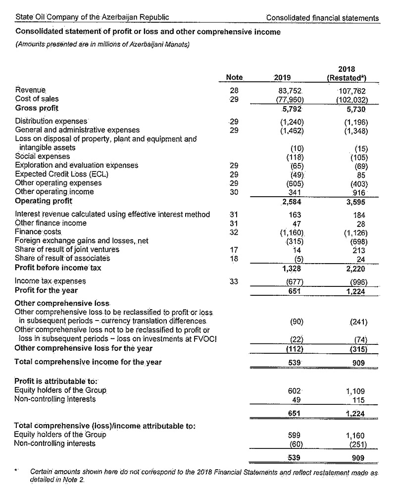 Ötən il şirkətin gəlirləri və xalis mənfəəti azalıbAzərbaycan Dövlət Neft Şirkəti (SOCAR) 2019-cu il üçün konsolidasiya edilmiş maliyyə hesabatlarını açıqlayıb.