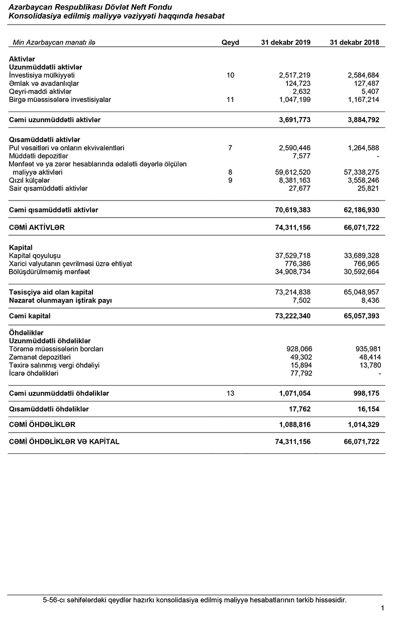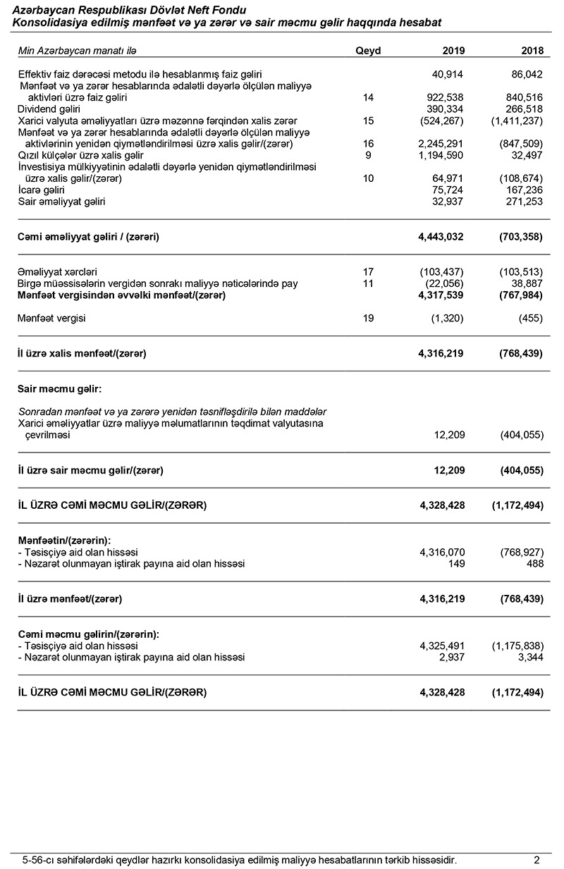 Hesabatda qeyd edilib ki, Fond 2019-cu ili 4 milyard 316 milyon 219 min manat xalis mənfəət ilə başa vurub. Halbuki, Fond 2018-ci ili 768 milyon 439 min manat xalis zərər ilə bağlamışdı.