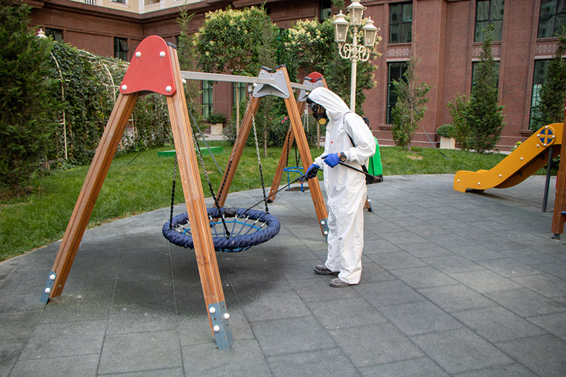 (®️) Ölkənin ən iri premium sinif yaşayış kompleksi “Renessans Palace” sakinlərini COVİD-19 virusundan qorumaq məqsədilə bütün kompleks ərazisində növbəti dəfə dezinfeksiya tədbirlərini həyata keçirib. Yaşayış kompleksinin yalnız sakinlərin ixtiyarında olan 1,5 hektarlıq həyəti, uşaq və idman meydançası, bütün blokları və mərtəbələri tam dezinfeksiya olunub.