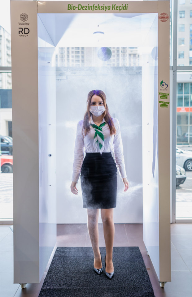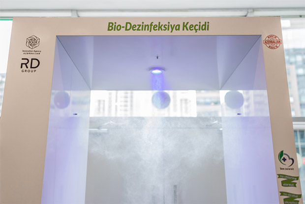 Bu gigiyena qapısı sensorların köməyi ilə avtomatik olaraq püskürmə üsulu ilə çalışır, insanların qapıda 3 saniyə qalması ilə üzlərini, paltarlarını, ayaqqabılarını ani anda dezinfeksiya edir. Dezinfeksiya məhlulu duman buluduna çevrilərək geyimi nəmləndirmədən dərhal bədənə hopur və mövcud mikroorqanizmləri zərərsizləşdirir. İstifadə olunan dezinfeksiya məhlulu insan orqanizmi üçün tam zərərsizdir. Gigiyena qapısında həmçinin üz tanıma infraqırmızı termometr quraşdırılıb. Süni intellekt texnologiyasına əsaslanan bu termometr bədən hərarətini dəqiq müəyyən edir. “Rabitəbank”, “Made in Azerbaijan” brendinin təşviqinə dəstək göstərir və son texnoloji standartlarına cavab verən “Bio-Dezinfeksiya keçidi” də yerli istehsaldır.