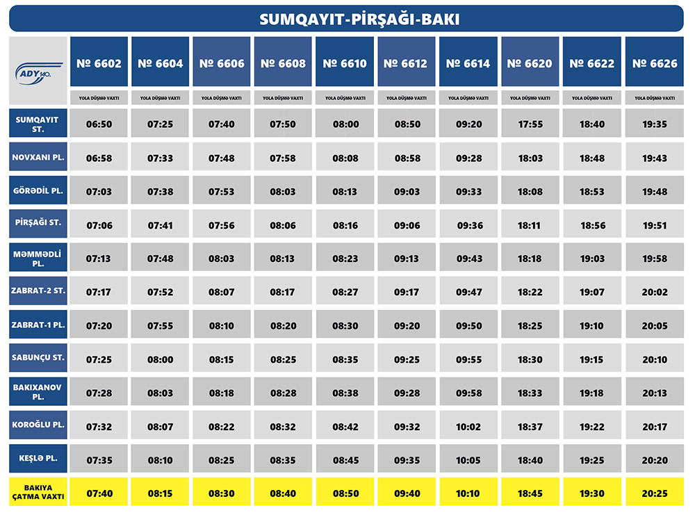 Tikinti müddətində Bakı-Pirşağı-Sumqayıt-Bakı xətti üzrə elektrik qatarların yeni hərəkət qrafiki ilə aşağıdakı cədvəllərdə tanış olmaq mümkündür.