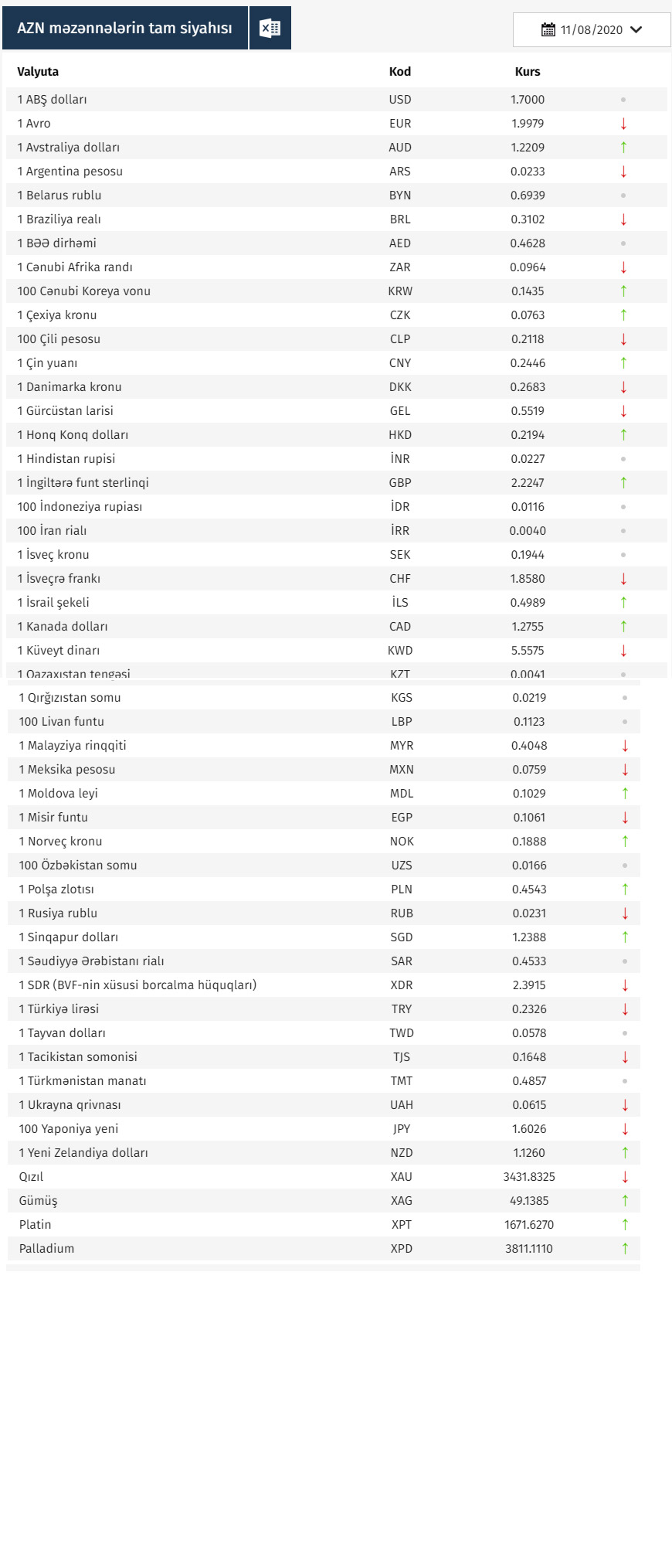 Rəsmi məzənnələr açıqlandı