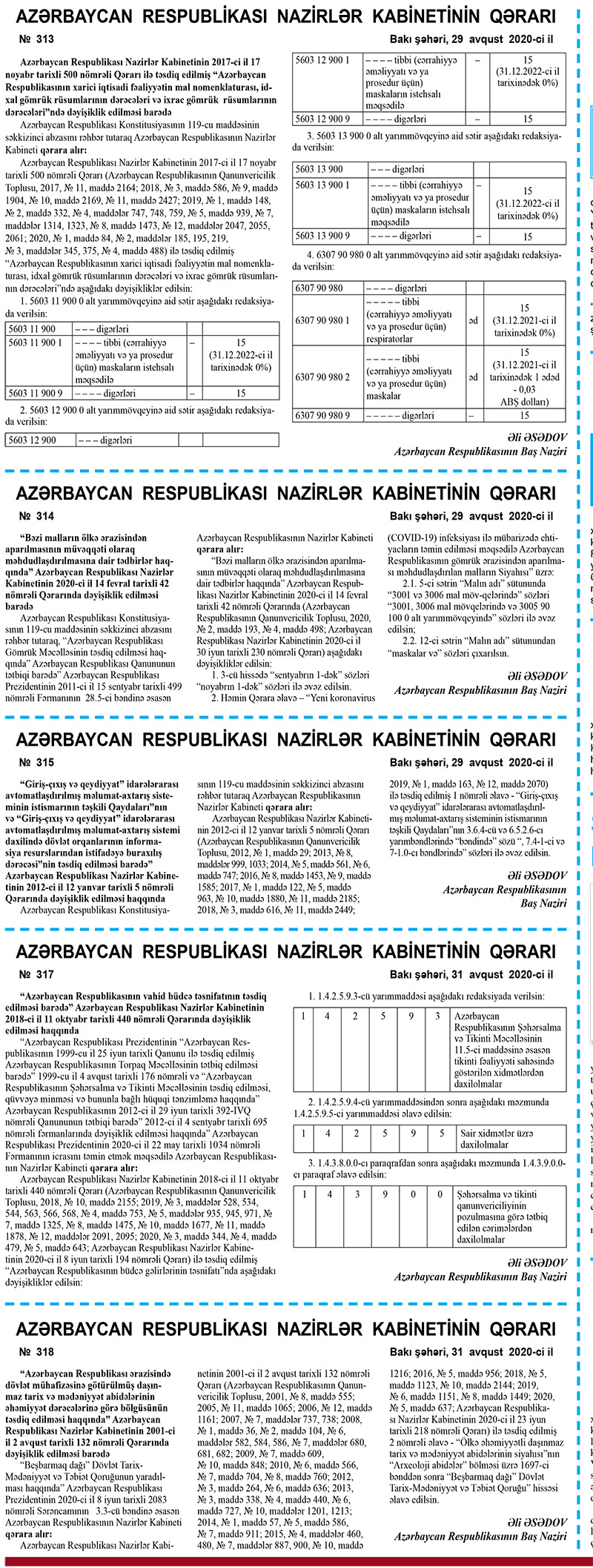 2021-ci il dekabrın 31-dən sonra iisə Azərbaycana gətirilən tibbi (cərrahiyyə əməliyyatı və ya prosedur üçün) respiratorlar və tibbi maskalara 15 faiz idxal gömrük rüsumu tətbiq olunacaq.